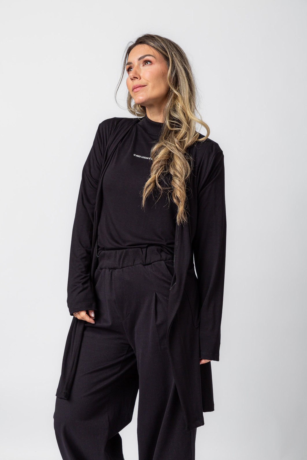 Confeccionada em viscose leve e macia, ela tem um caimento suave no corpo, trazendo frescor e fluidez para o dia a dia. A leve gola com acabamento em ribana adiciona um toque de charme e sofisticação, valorizando o visual sem perder a simplicidade.