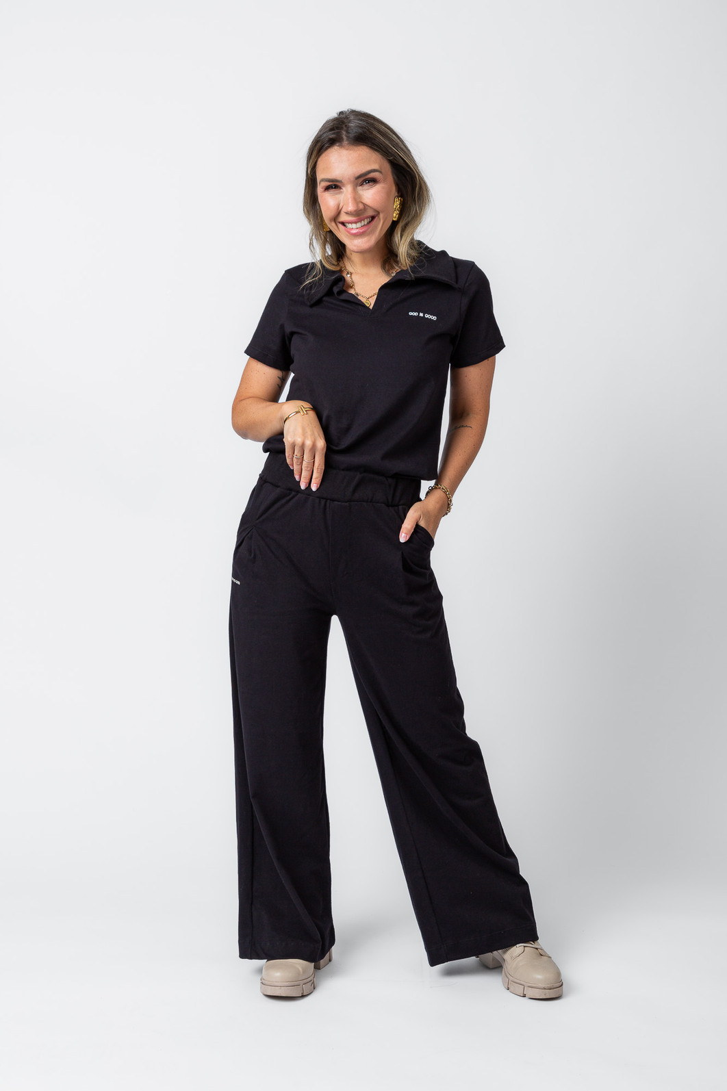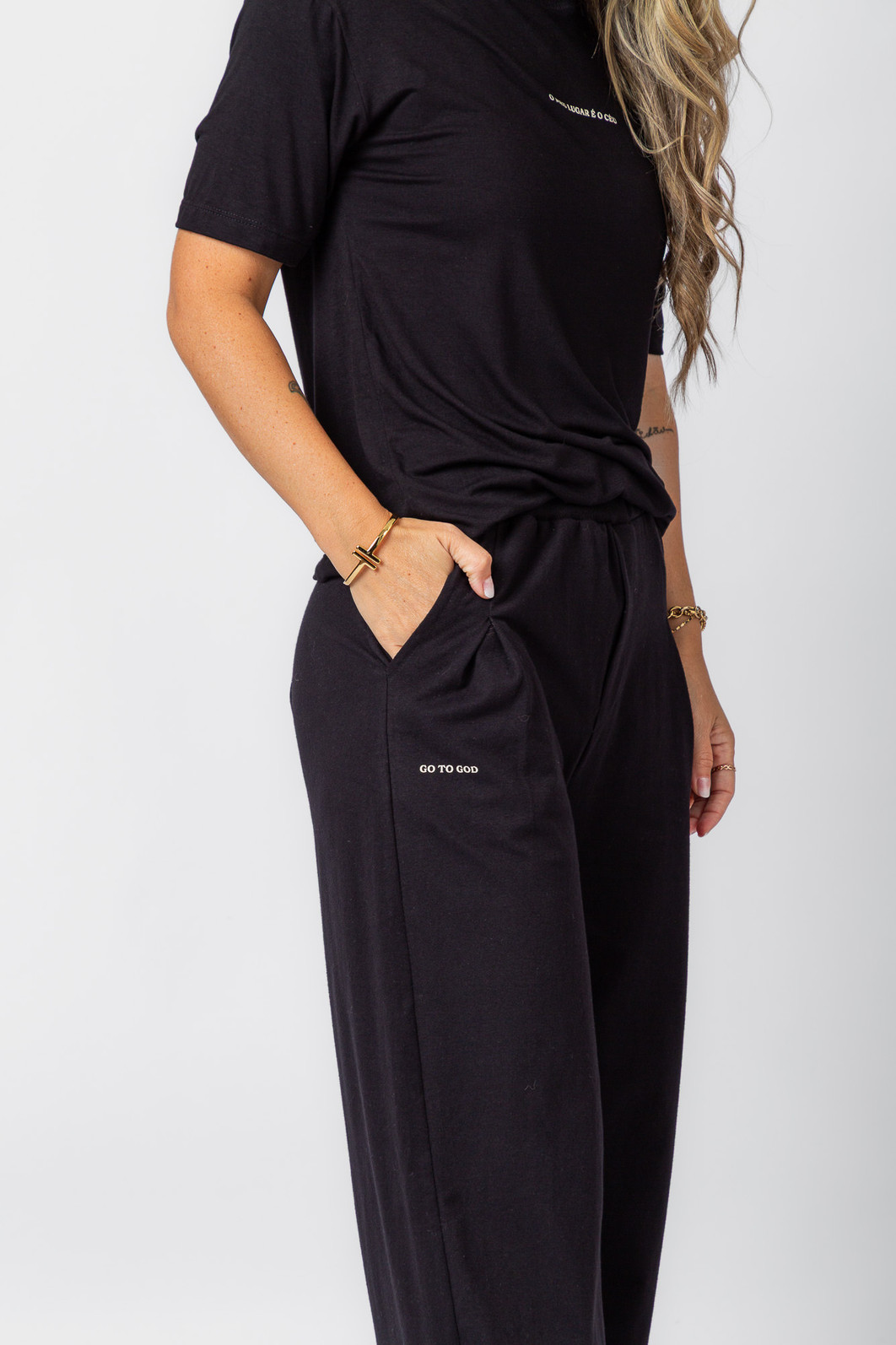 A Calça Pantalona Go To God possui modelagem ampla, que traz leveza e elegância ao vestir, com cós em ribana que garante conforto, ajuste perfeito e liberdade de movimento.