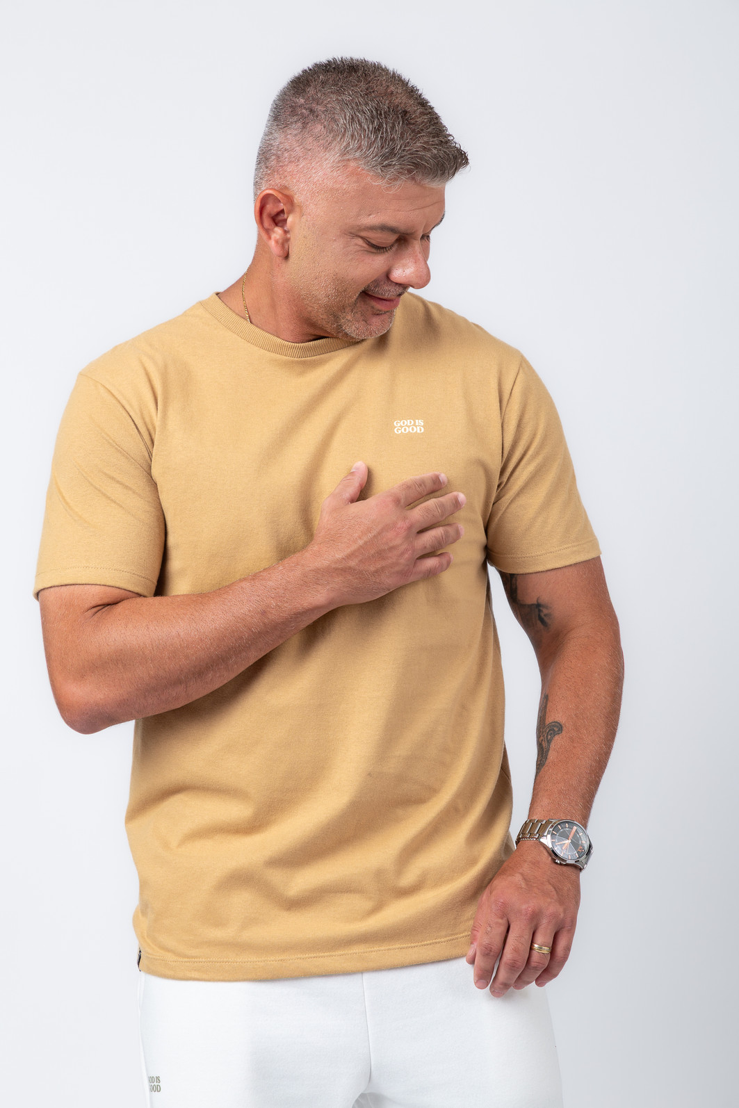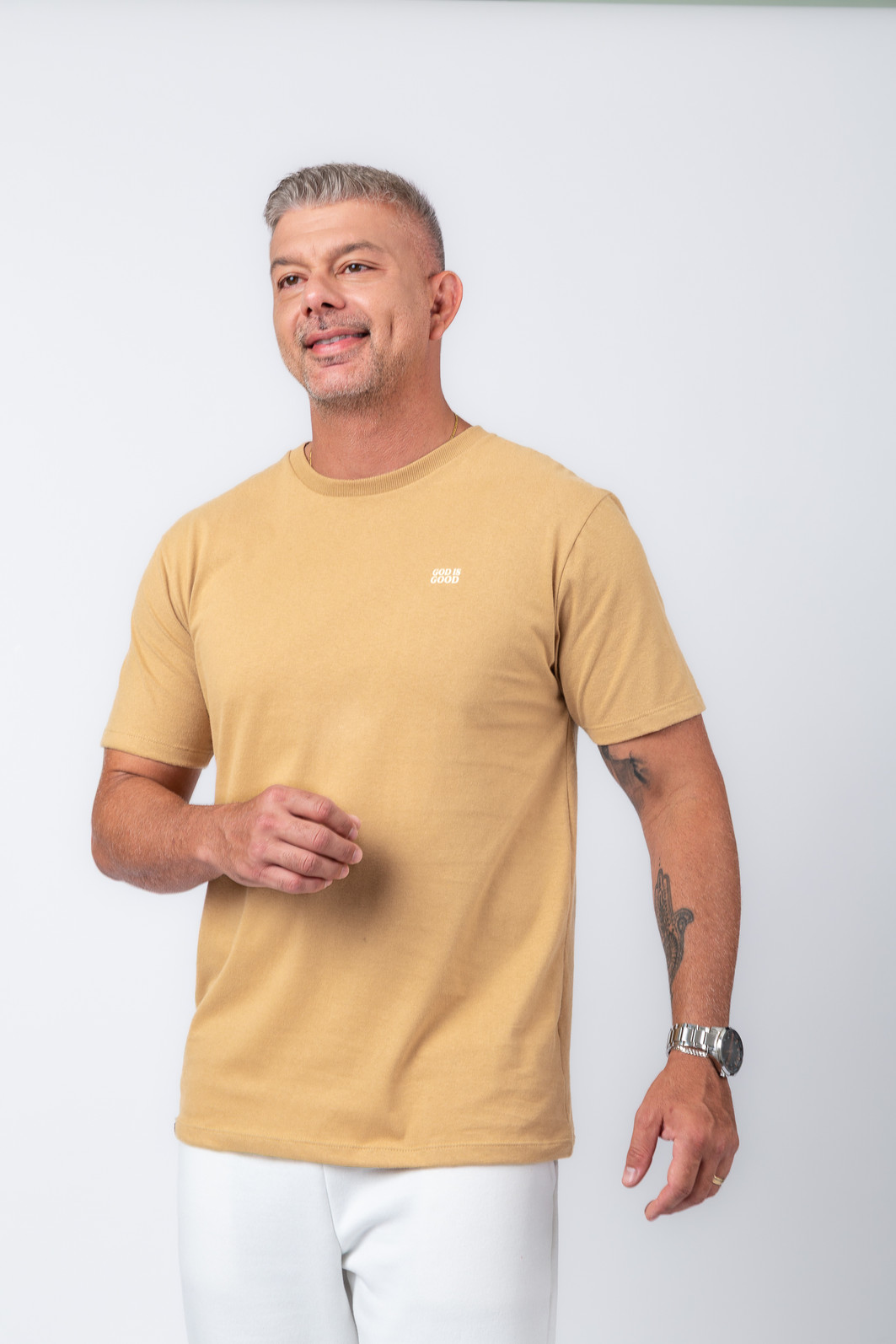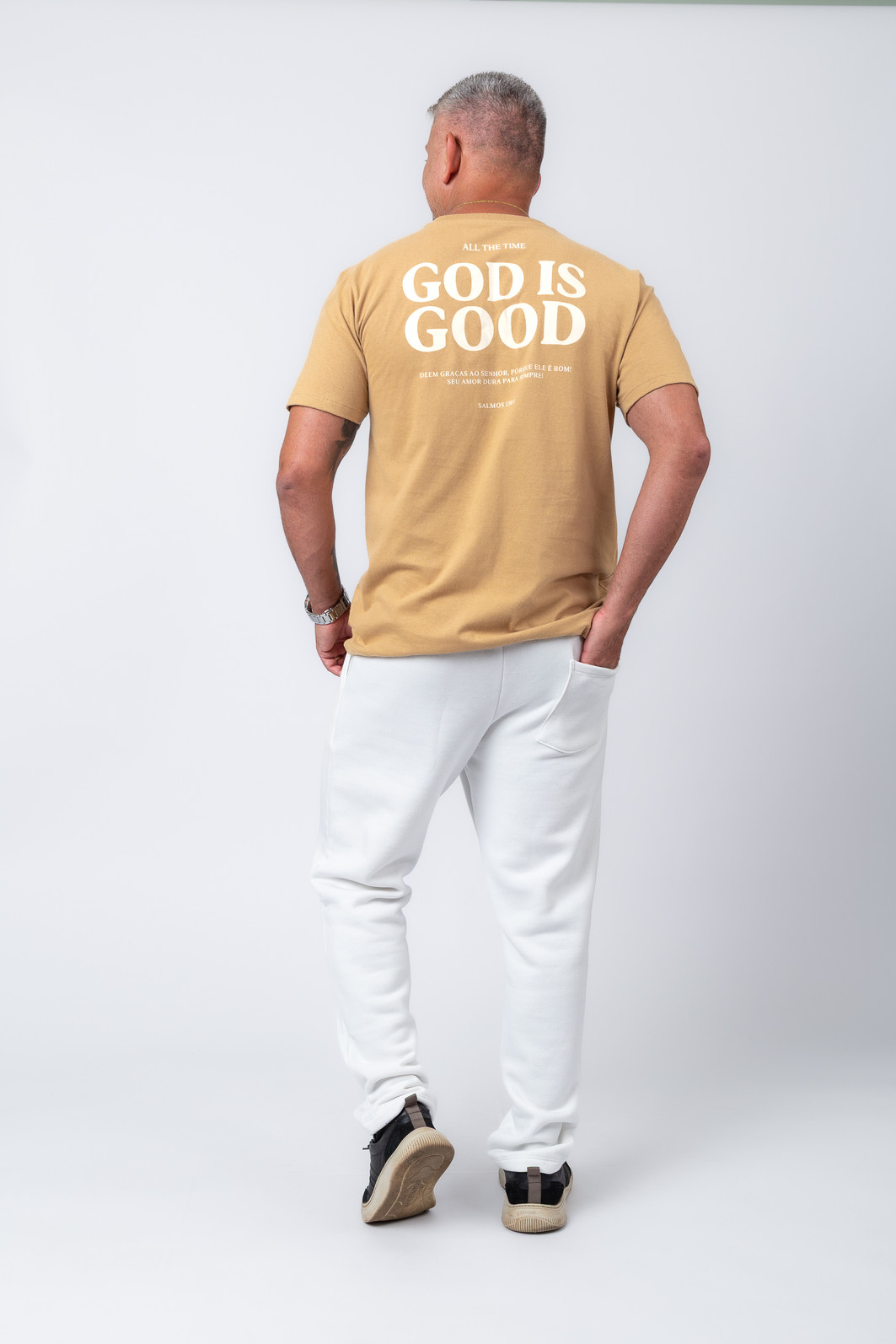 A estampa “All The Time” relembra uma verdade simples e profunda: Deus é bom o tempo todo — e essa mensagem faz dessa peça muito mais do que uma camiseta.