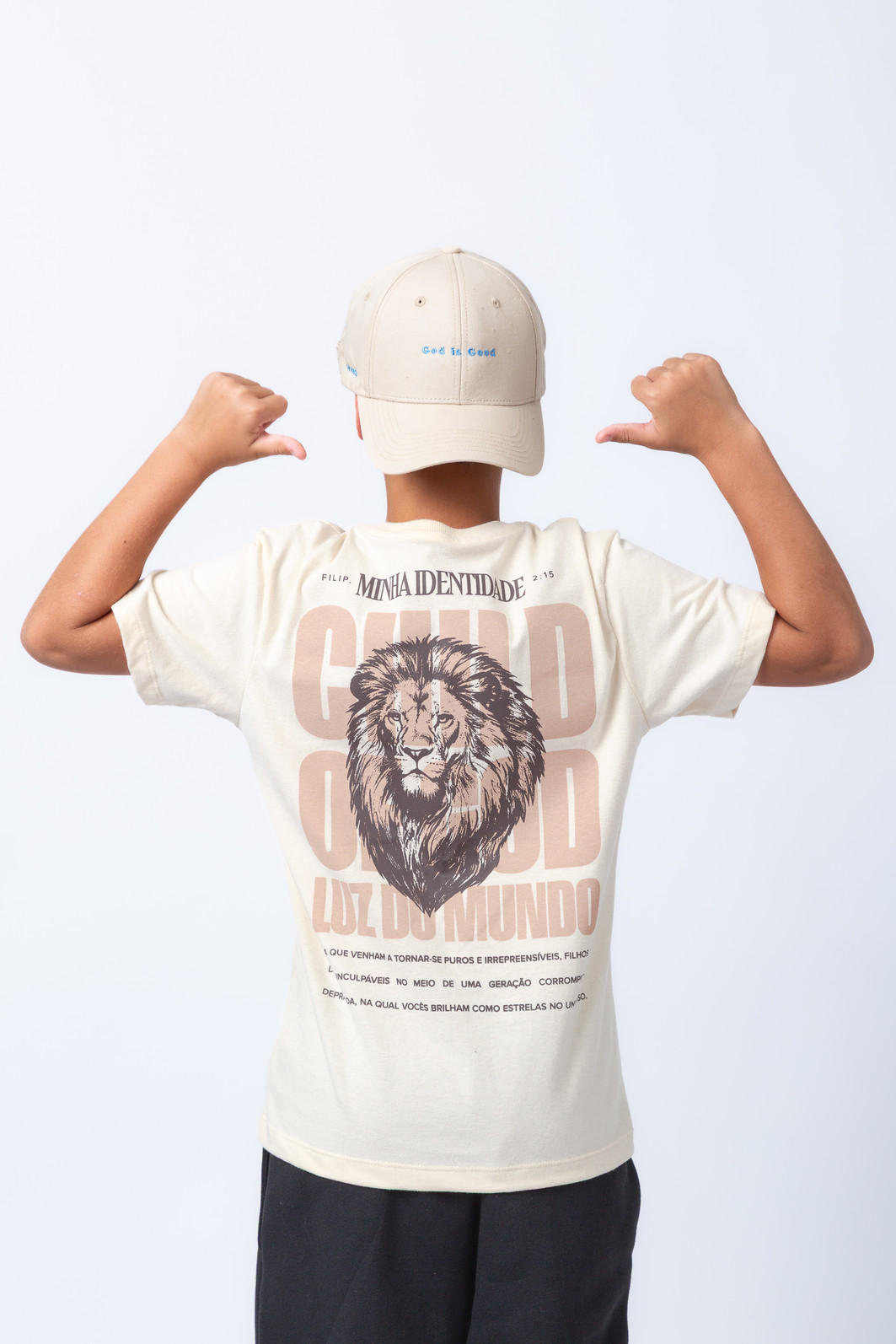 Essa é a camiseta tema da coleção, criada para marcar uma estação de posicionamento, consciência e identidade em Cristo.