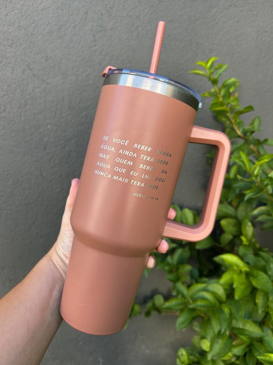 Garrafa térmica em aço inox com parede dupla e isolamento a vácuo, mantendo bebidas quentes ou frias por mais tempo.