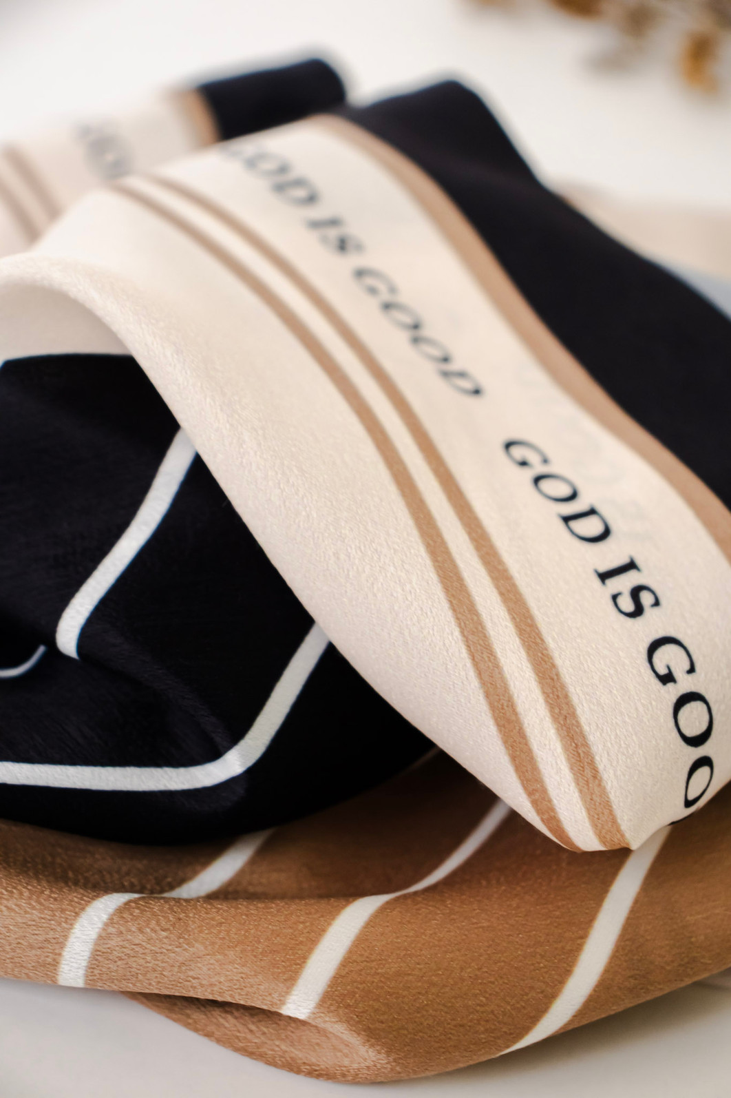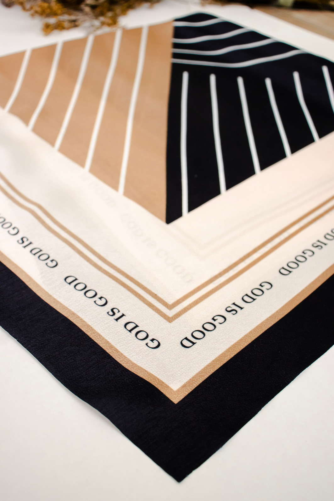 O Lenço Essência traduz, em linhas e formas geométricas, aquilo que permanece: a verdade de quem Deus é — constante, imutável, bom.