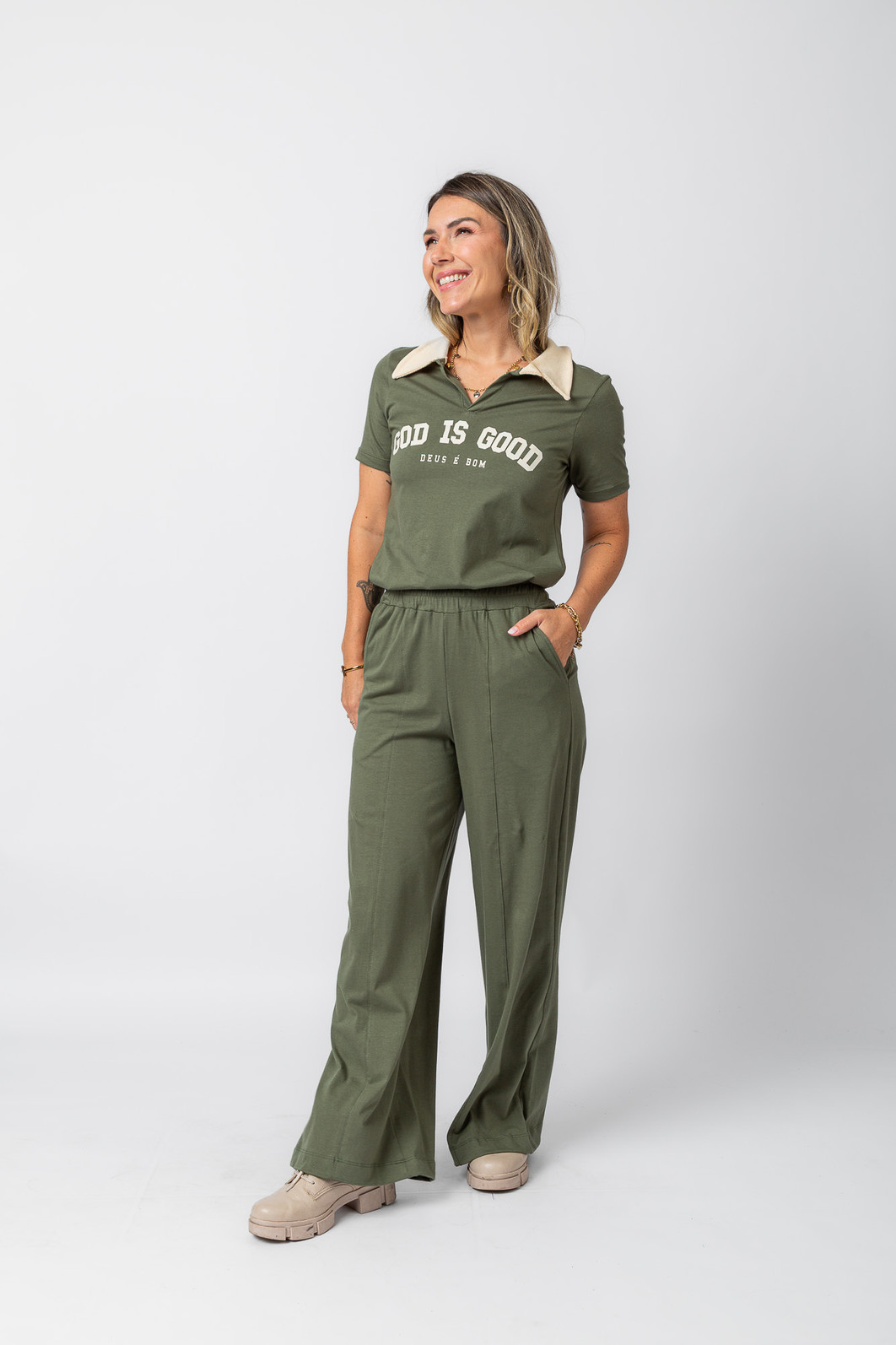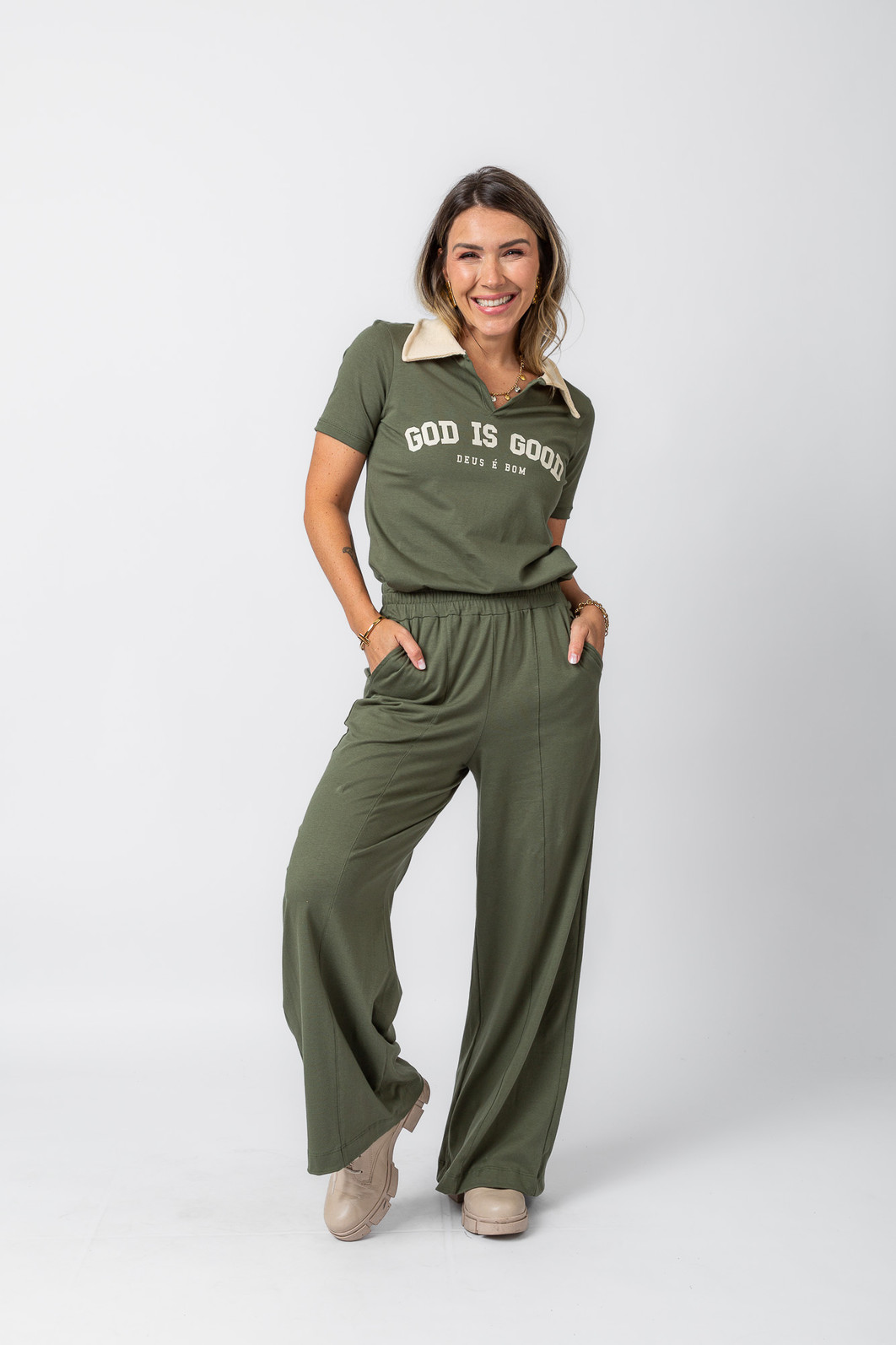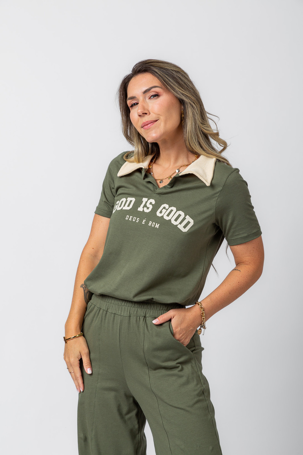 Ideal para compor looks estilosos ou até montar conjunto, essa polo carrega uma mensagem poderosa: Deus é bom em todo tempo. Uma peça perfeita para quem quer se vestir bem e expressar sua fé com autenticidade.