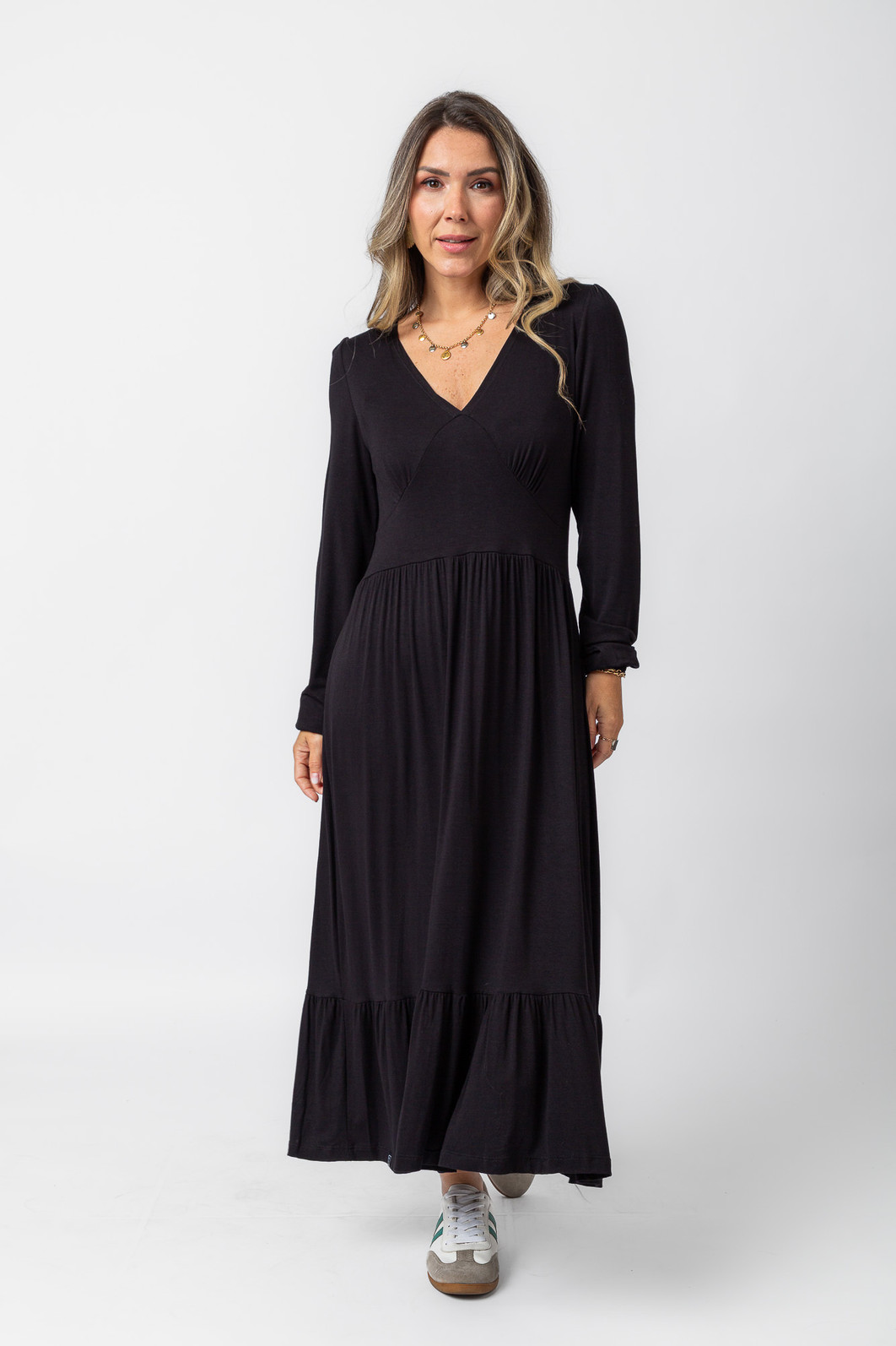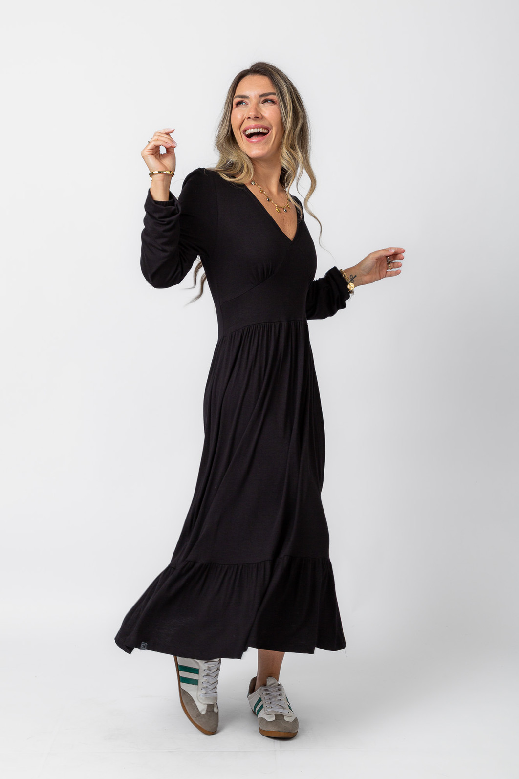 Confeccionado em viscose leve e fluida, ele tem um caimento que acompanha o movimento do corpo com naturalidade, trazendo leveza e elegância em cada passo. Sua modelagem acinturada valoriza a silhueta de forma sutil, enquanto o comprimento midi transmite sofisticação e delicadeza.
